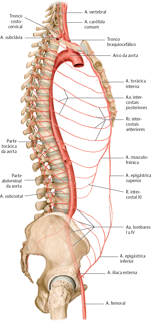• As artérias intercostais posteriores e artérias subcostais originam-se da parte torácica da aorta e irrigam a porção posterior da parede abdominal.